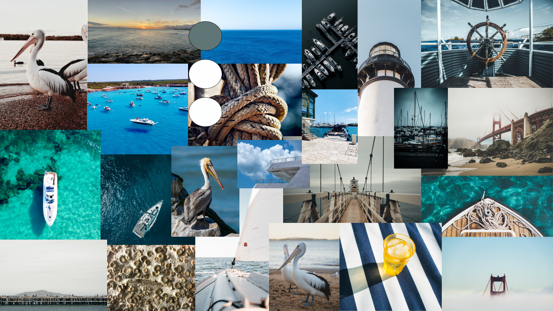 I was inspired by nautical aesthetic & researched many possibilities, & came up with this assortment to show to the clients.